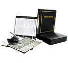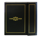 1 1/4" 3 ring "D" vinyl binder with matching slipcase with opening and closing booster, Company Records is printed in gold on the front cover. Added clear pocket on the inside front cover can hold additional important papers. Gold label holder on the spine with the entity name printed on it. 1 5/8" embossing seal (instead of the gold wafer seal) is included.