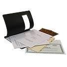 Our Slim Line corporate kit allows you to organize and protect all your important company information. This is a 1" binder (angle D) with a fold over flap to safely secure your documents inside. It contains an inside pocket to hold important documents.