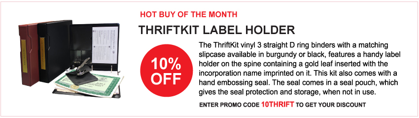 Our Slim Line corporate kit allows you to organize and protect all your important company information. This is a 1" binder (angle D) with a fold over flap to safely secure your documents inside. It contains an inside pocket to hold important documents.