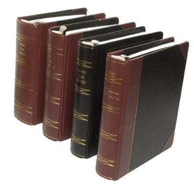 This minute book can only be described as Impressive. This beautiful gold embossed rounded library spine, with old style classic "Hubs" includes hand embossing of the entity name in gold. A triple post binding gives you extra security, durability and style found in minute book binder. Add a slipcase or minute paper for an additional charge.